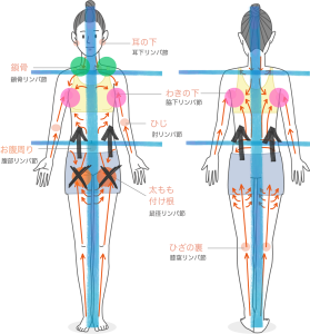 健側(流れの良い側)のリンパ節へ流していくこと。